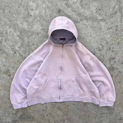 Tùy chỉnh Terry Rhinestone mùa thu hoodie người đàn ông quá khổ cắt axit rửa Zip Up đau khổ cổ điển Sweatpants và hoodie Set