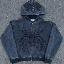Custom Streetwear oversize autunno mimetico in pietra acida lavata con cappuccio con cappuccio sbiadito e acido con cerniera felpe Unisex